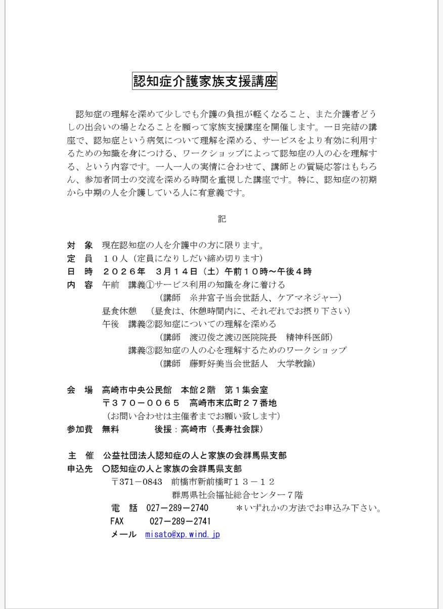 「家族の会」群馬県支部の活動にご理解とご協力をお願いします。